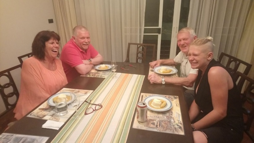 Fram emot sextiden var allt förberedelsearbete gjort och det minutiösa detaljarbetet kunde påbörjas innan gästerna skulle komma runt sjutiden. Knackelinbang på dörren hördes och in kom först BGS8-junior, Jan-Owe. Som vanligt hade damerna fastnat i Bangkok-trafiken som alltid renderar i sen ankomst för vissa, men till slut dundrade också Karin och Xenea in med glädje och leenden och frosseriet kunde inledas.