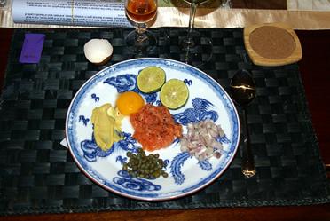 Lax, äggula, charlottenlök, fransk senap, lime, kapris |